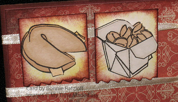 I decided to use some pre-stamped and pre-colored images from MTME's So Fortunate set. I love fortune cookies! It's a good thing too since my family loves Panda Express. I had decided some time ago I wanted to find a way to recycle those paper fortunes found in fortune cookies. MTME's So Fortunate set makes recycling super easy!!